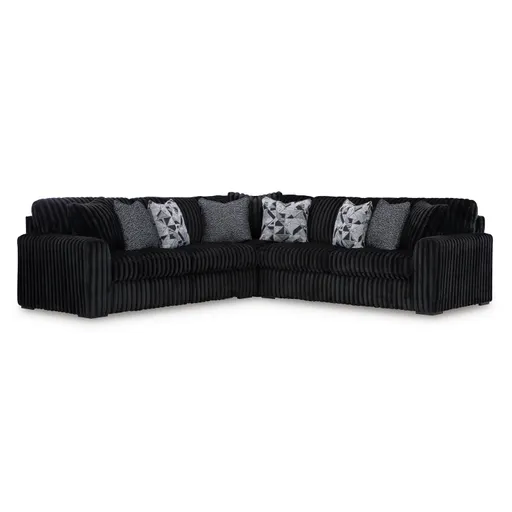 Relax in laid-back luxury with the Midnight Madness 3 Piece Sectional. This onyx-toned sectional features reversible cushions, high-resiliency foam, and soft corduroy polyester upholstery. Built for comfort and durability with a corner-blocked frame and sag-resistant platform foundation. Includes coordinating accent pillows.