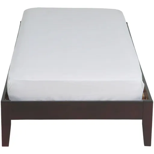 The Nevis platform bed's elegant minimalism looks great against a wall or floating in a room. This stylish design's contemporary appeal features tapered legs and a rich finish. Crafted of tropical mahogany solids and veneers, with solid wood slats and center supporting legs so there's no need for a box spring.