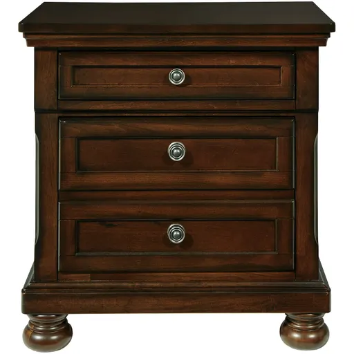 Those drawn to the warm feel of traditional interiors love how this bedroom suits their style. Rustic finish is rich with character, while high headboard makes an impressive stance. Beveled panel framing reflects beauty in the details. Cherry Veneers with Rustic Brown finish enhances the collection.
