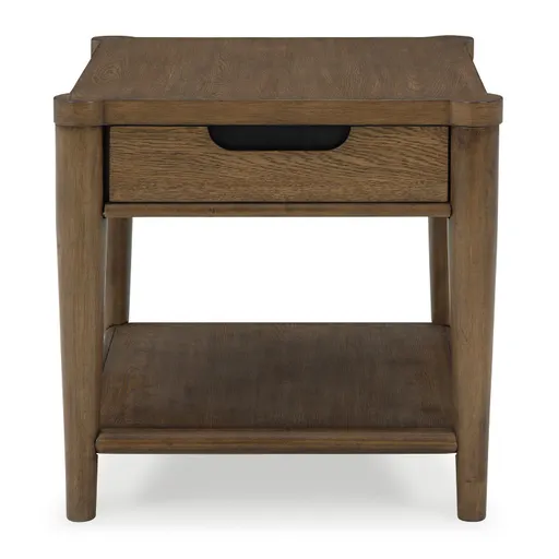 Give your modern or mid-century living room that finishing touch with this end table. It combines sophistication and functionality, with an open shelf for essentials and a spacious drawer to keep gaming controllers and remotes at your fingertips. Picture yourself on the sofa with this convenient table by your side, bringing a touch of minimalism with big character to your home.