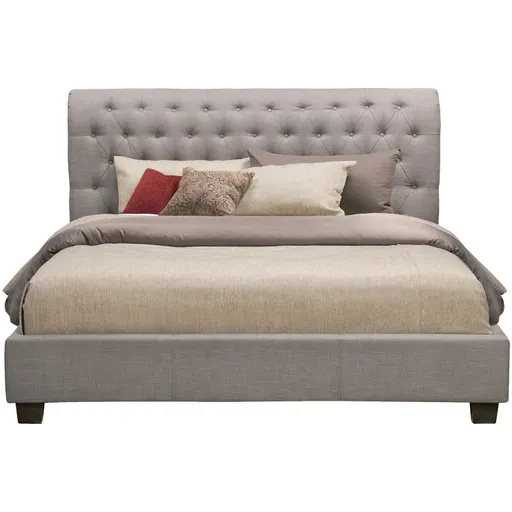 True to its name, the Royal bed makes you feel extra-special – every single night! The button tufted headboard with a rolled shape has a classic look that's as timeless as it is luxurious. It's the perfect backdrop for reading, watching TV or lounging in bed. This platform bed is upholstered all around in linen-look fabric and padded for a beautifully tailored look you'll love. The frame is constructed of hardwood and engineered wood.