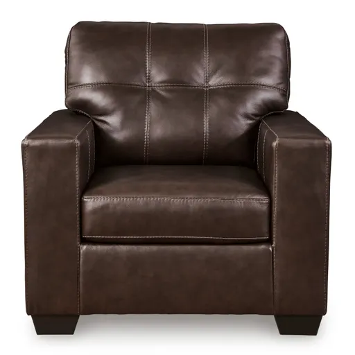 Whether your inspiration is contemporary or classic, this chair's good looks and affordable luxury are hard to deny. Its clean-lined silhouette and skillfully matched leather and faux leather upholstery offer a transitional sensibility that's right at home in your home. And the ample cushions with tufted details invite you to relax in comfort. - Product Details provided by Manufacturer, Slumberland not responsible for errors in information.