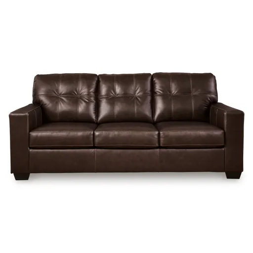 Whether your inspiration is contemporary or classic, this sofa's good looks and affordable luxury are hard to deny. Its clean-lined silhouette and skillfully matched leather and faux leather upholstery offer a transitional sensibility that's right at home in your home. And the ample cushions with tufted details invite you to relax in comfort. - Product Details provided by Manufacturer, Slumberland not responsible for errors in information.