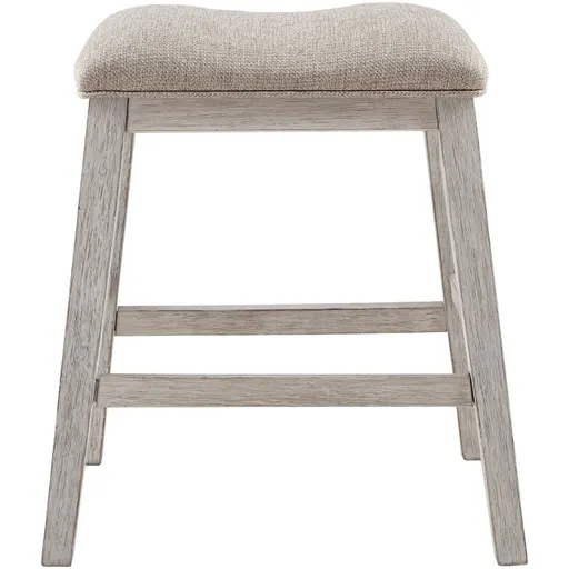 This upholstered stool invites you to raise the bar on small space living. An inspired choice for coastal chic or modern farmhouse settings, this comfortably cushioned stool sports a Gray/Silver white finish with rub-through effect for timeworn appeal.