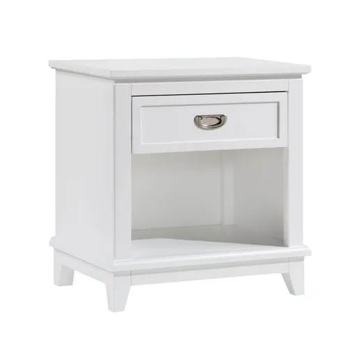 Add style and storage to your bedroom with this nightstand from the Sloane collection. The drawer on the nightstand is constructed with dovetail joints, features smooth ball bearing glides for easy access, and polished nickel hardware to match the other pieces in the collection. The storage cubby under the drawer is the ideal place for items you want in reach.