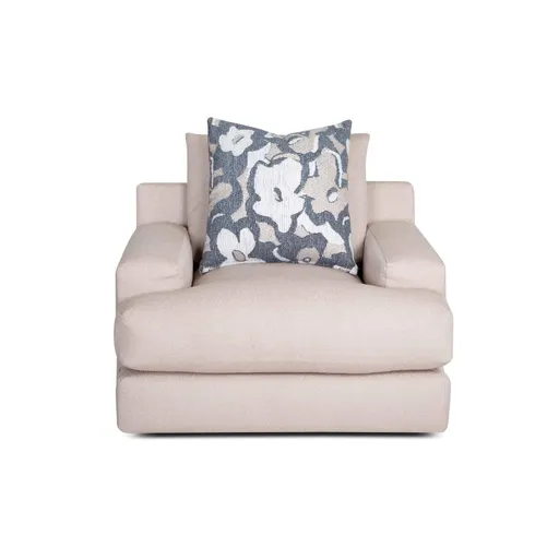 The Sutton Swivel Chair adds a touch of casual elegance to any room. Upholstered in soft oatmeal fabric, it features a smooth swivel base and gel-blended seat foam for lasting comfort. Built with a reinforced plywood frame and heavy-duty arched seat springs, it delivers durability and style from every angle.
