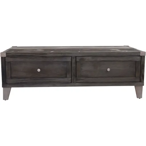 The Todoe cocktail table is even more functional than it looks. It has a lift-top mechanism, so you can bring half the table even closer (perfect for laptop work or snacking). The other half features two drawers, each with a removable storage tray for exceptional organization. This rustic industrial coffee table has a wire brushed finish for a weathered look, metal accents on each corner, and metal legs. Upgrade your living space with Todoe. Made of veneers, wood and engineered wood.