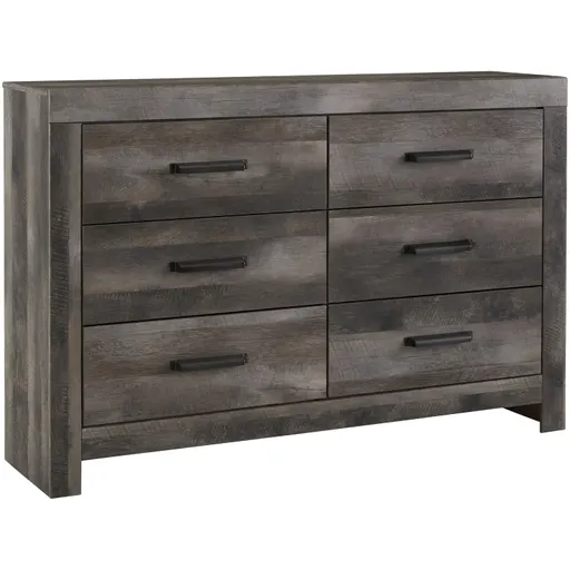 The Wynnlow dresser defies easy classification. It's rustic, it's industrial, it's farmhouse chic—but most of all, it's cutting edge. The crisp, clean profile captures the look of weathered woodgrain with natural variations in color. Hooded drawer pulls add a modern accent. Roomy drawers have side roller glides for smooth operation. Pair this six-drawer dresser with the matching mirror for a complete look. Made of engineered wood.