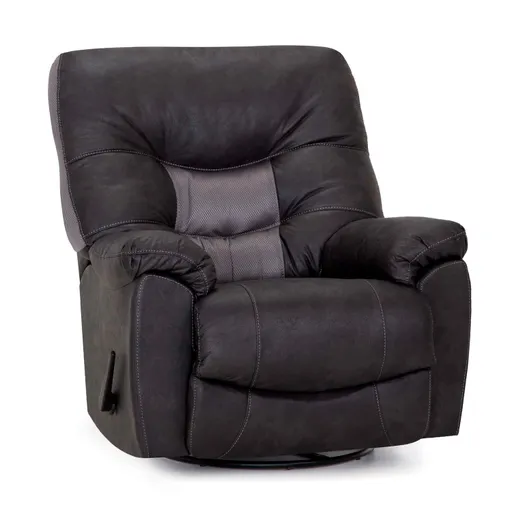 This swivel recliner is the ultimate in comfort and features a technologically advanced "air-flow" fabric. This fabric meshes with the cradle-back design to offer breathability and superior support. Engineered with a premium plywood frame system and "WOW" gel-injected seat cushions. Also available as a manual or power rocker recliner.