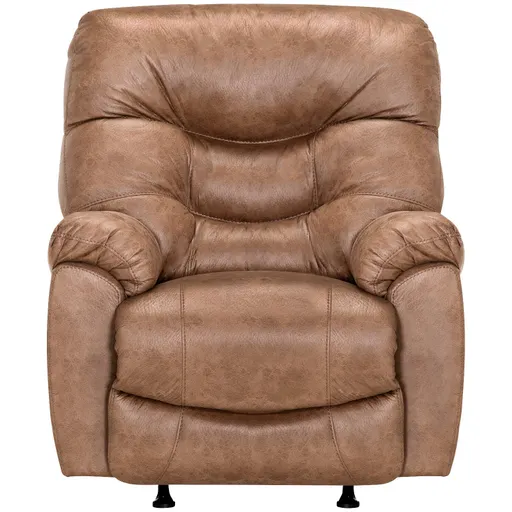 Enjoy some "me time" in the Yogi rocker recliner. The padded back was inspired by a catchers mitt, to cradle you in supportive softness. Upholstered in easy-care leather look fabric, Yogi is perfect for the transitional or modern living space. Built-in lumbar support and a chaise style leg rest make this rocker recliner a sure bet for best seat in the house. Premium springs, gel-injected foam, and a heavy-duty reclining mechanism assure long life.