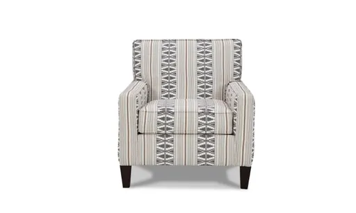 Eye-catching accent chair features a lively silver and off-white pattern with a contemporary silhouette over tapered wood legs.