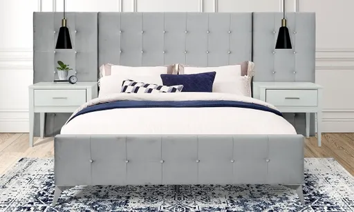 The Emma Silver Gray King bed features two nightstands, perfect for an elegant and dreamy night's sleep. The Jewelry button tufting elevates it's luxurious aesthetic. While Assembly is required, this bed is simple and seamless to put together, so you'll be dreaming the night away in no time.