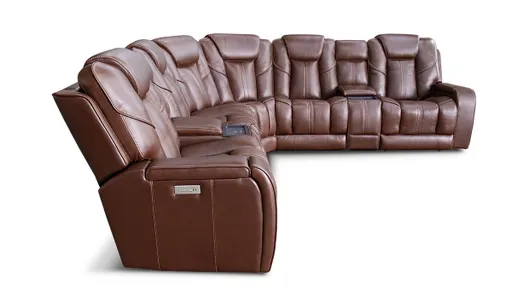 Merlin Coffee Leather 7-Piece Power Sectional | Furnzy.com - Shop local furniture stores in one place