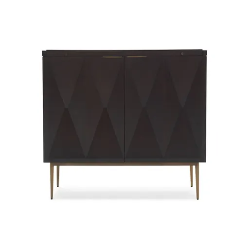Add style to your entertaining with Roxbury Bar by Mitchell Gold + Bob Williams. This stunning bar boasts flexible storage and display options, highlighted by distinctive 3-D inset-diamond doors and satin-brass legs. The top can be flipped up for a mirrored backdrop or closed for a sleek serving surface, with a slim mixing drawer and 3 adjustable glass half shelves inside. Elevate your hosting game with the Roxbury Bar.