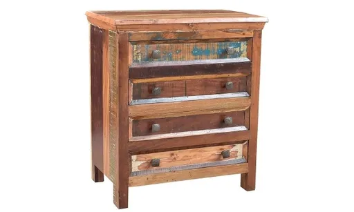 4-drawer nightstand handmade by a single artisan from start to finish with recycled teak and naturally distressed solid woods.