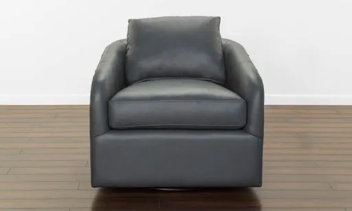 Experience comfort from our Blue Leather Swivel Chair, with eight-way hand-tied construction, luxurious feather down seating, and 100% top grain leather. A perfect addition to any collection of living room chairs.