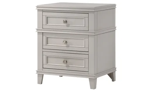 Add style and functionality to your bedroom with the Waterpointe Gray 3-Drawer Nightstand. With its soft gray finish and sleek design, this nightstand complements any decor. It features three spacious drawers with smooth ball bearing drawer guides, providing ample storage space for your essentials. The built-in USB charging port allows you to conveniently charge your devices overnight. Crafted with poplar solids and birch veneers, this nightstand offers durability and quality.