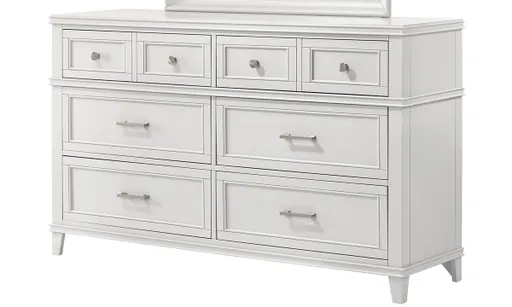 With poplar solids and birch veneers in an ivory finish, the Waterpointe White 6-Drawer Dresser offers ample storage space and a timeless design. With smooth ball bearing drawer guides, this dresser combines functionality and style to elevate your bedroom decor.