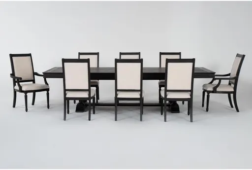 Sale$3,175.00$2,375.00Living Spaceschapleau iii black wood 92-120" extendable double pedestal dining with side chair + armchair set for 8SaveAdd to List