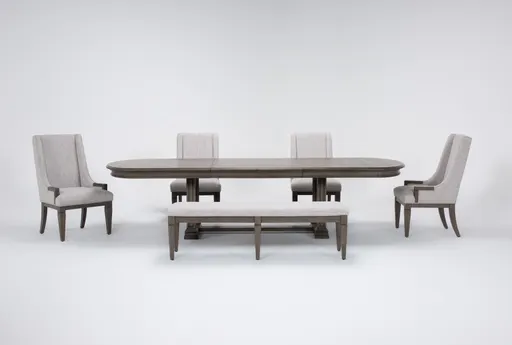 $2,430.00Living Spacesadriana 88-124" extendable oval rectangular grey wood trestle dining | bench | side chairs set for 6 | parsonsSaveAdd to List