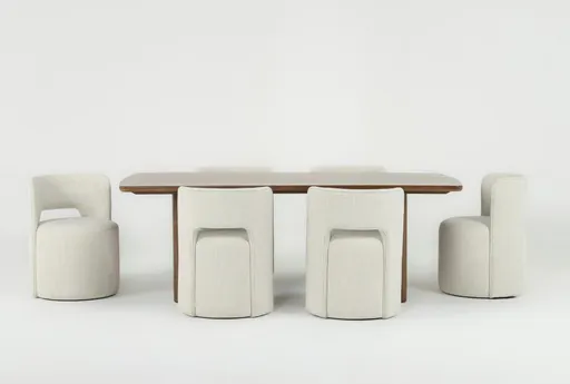 $2,065.00Living Spacescitra brown mango wood 86" dining table with mika cream upholstered cut out curved back barrel dining chair with wheels set for 6SaveAdd to List