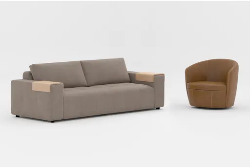 $1,890.00Living Spacesamallo mocha brown fabric 102" sofa with tray | santiago vintage caramel leather swivel barrel club chair | tuftedSaveAdd to List