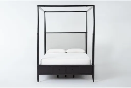 $1,395.00Living Spacesausten black queen wood & upholstered platform canopy bed with side & footboard storage | poster | drawersSaveAdd to List