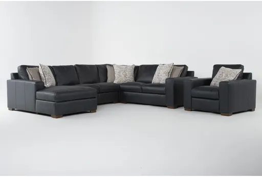 $6,890.00Living Spacesbig sur blue leather 163" 4 piece u-shaped modular sectional with armless loveseat left arm facing chaise & chairSaveAdd to List