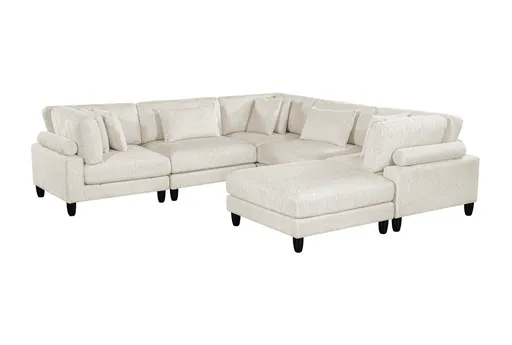 $1,580.00Living Spacesartem beige 6-piece modular sectional with ottoman (3 corner + 2 armless chairs + ottoman)SaveAdd to List