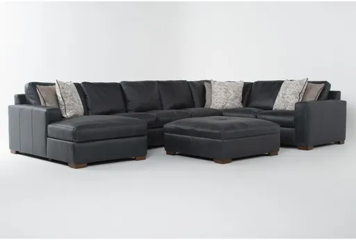 $6,245.00Living Spacesbig sur blue leather 169" 4 piece u-shaped modular sectional with armless sofa left arm facing chaise & cocktail ottomanSaveAdd to List