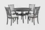 The Tamy 47" Grey Wood Round Dining Set for 4 is a perfect addition to your dining room or kitchen space. Made from rubberwood solids and veneers, this traditional dining set combines durability with style. The set includes a round table and four armless chairs, providing comfortable seating for your family or guests.
