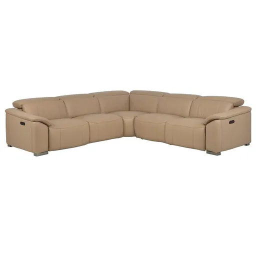 From its gorgeous deep color to its extra comfortable cushions, the Cordova Dark Cream Leather Power Reclining Sectional with 5PCS/3PWR is the perfect couch for your space. Made with 100 percent top grain leather where the body touches, this impressive sofa offers power motion, zero gravity position, and built-in USB-A and C ports.