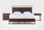 Sawyer Brown Walnut King Upholstered & Wood Platform Bedroom Set With 1-Drawer C Table & 3-Drawer Nightstand | Panel