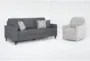 The Stark Dark Grey Fabric Sofa & Light Grey Fabric Swivel Arm Chair bring comfort and style to your living room. The contemporary design features a firm comfort level, and the pieces include a sofa and a chair. This set ensures durability with its combination of hardwood, engineered wood, foam, and fabric.