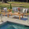 The Hampton collection offers a blend of materials in a contemporary look that adds warmth and substance to your space. The sofa and club chair feature a neutral shade of resin wicker strands over a solid teak frame. The seating is fully assembled and cross braced to provide extra support. The weave pattern allows air to flow through, keeping you cool while you lounge outside. The coffee table is composed of solid teak and has a fine, sanded finish with a slat-top design. Each piece is a combination of machine-made for precision and handmade with traditional Mortise and Tenon construction for smooth and tight joinery.