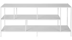 A must-have for living areas and entertainment spaces, this Winthrop 55" TV stand with metal shelves sets the stage for the big game, a movie marathon, or that season finale everyone's been talking about. Crafted from steel it strikes a clean-lined silhouette and boasts a solid finish for a look that blends with nearly any color palette.
