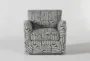 Introducing the Revolve II 34" Grey Fabric Swivel Accent Chair, a perfect blend of style and comfort for your living room or bedroom. This modern armchair features a striking patterned design that adds a touch of sophistication to any space. The swivel function and supportive arms make it an ideal choice for lounging and relaxation.