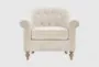 The Fayette Cream White Tufted Accent Barrel Fabric Arm Chair brings a touch of traditional elegance to any room. Inspired by Martha Stewart's home in Bedford, New York, this chair features classic rolled arms, button tufting, and turned front legs. Its firm comfort level and durable construction ensure it will be a lasting addition to your home. This design is the perfect bedroom chair, reading chair, club chair or accent chair for living room.