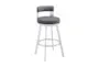 The Copia 26" Swivel Counter Height Stool in silver metal with grey faux leather is a stylish addition to any dining room or kitchen. Designed for modern living, this armless stool combines comfort with functionality. The swivel feature allows for easy movement and flexibility, making it perfect for social gatherings and food prep.