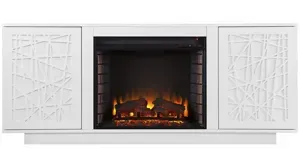 Turn up the heat at movie night with this Fordbridge fireplace console. A spacious top displays d_cor pieces or framed photos, while textured, push-to-open doors tuck away DVDs and video games. Flickering flames and faux embers create a realistic fireplace console look, working with or without heat for warm ambiance year-round. Gather around in cozy comfort when you add this freestanding fireplace console to your living room or open concept space.