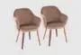 The Lunna Brown Upholstered Velvet Dining Chair in Walnut Wood Set of 2 brings contemporary style to your dining room. These chairs feature a smooth brown velvet fabric that offers a luxurious feel, while the solid walnut wood legs provide sturdy support. Perfect for any dining setting, the curved shape and flared arms add a touch of sophistication to your space.
