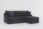 Introducing the Esteban III Midnight Black 95" Sofa with Reversible Chaise, perfect for any living room. This casual black sofa features a comfortable design and is upholstered in 100% polyester fabric. The reversible chaise allows for versatile seating arrangements to suit your needs.