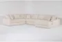 Introducing the Sawyer II 168" White Beige Boucle Fabric 4 Piece Sectional with Right Arm Facing Oversized Chaise! This modern sectional features a versatile and reversible design, making it perfect for any living room. With its soft polyester fabric and neutral white color, it adds a touch of comfort and style to your home.