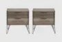 The Mason 2 Drawer Nightstand Set Of 2 is an industrial-style bedroom furniture that comes with storage and drawers made of wood and metal. This set requires assembly and features 3-tone gray, acacia veneer, Asian hardwood, engineered wood, and dovetail drawer with ball bearing glides.
