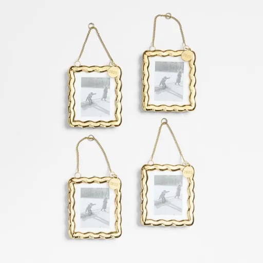 Celebrate the year gone by with our annual frame ornaments. Adorned with 2025 charms, the scalloped brass frames highlight photos of milestones, new babies or pets on your Christmas tree. Gleaming chain hangers keep the look classic and glam. Fill with favorite snapshots and hang on the tree or use as sure-to-be-treasured gift toppers.