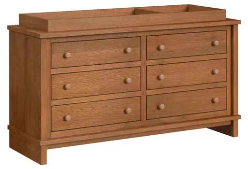 The Wyller Dresser and Topper in Oak features a sleek, timeless design with ample storage space. Crafted from durable oak, it offers both functionality and style, making it a perfect addition to any bedroom or nursery.
