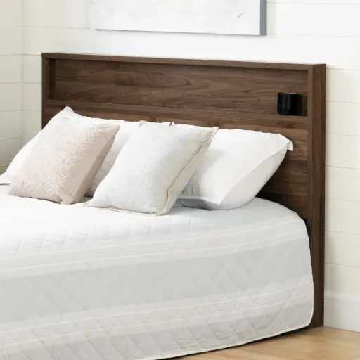 This Lensky natural walnut full-queen headboard, offered by RC Willey, features a long, shallow shelf for your cell phone, watch, or anything else you’d like to have close at hand at bedtime! The clean lines of this piece make it suitable for a wide range of tastes and spaces and is sure to add fresh, modern appeal. This headboard can be attached to a standard metal bed support for both queen and full size beds. When attached to the smaller size bed, the extra width on either side gives the piece a more striking look and extends to the edge of your comforter. On the larger bed, the headboard is the same width as the bed. Available for Online Purchase Only. Assembly required. This product ships direct from the manufacturer, so RC Willey Delivery is not available.