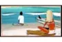 Bring the serene vibes of a beach day into your home with this 22"x42" Modern Beach Day artwork, beautifully framed in black. The vibrant blue, orange, and white colors on stretched canvas capture the essence of a coastal retreat, making it a perfect addition to any modern or coastal-themed space.