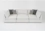The Weekend White Performance Fabric 125" 6 Piece Modular U-Shaped Sectional with 2 Corners, 3 Armless Chairs, and Ottoman is perfect for creating a cozy and stylish living room. This sectional is designed with a soft comfort level and features a reversible orientation, allowing for flexible arrangements. Its cotton color and 100% polyester material ensure durability and a modern aesthetic.