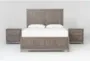 Transform your bedroom into a modern sanctuary with the Hendricks King Grey Wood 3 Piece Bedroom Set. This set includes an Eastern King panel bed and two 2-drawer nightstands, all featuring a light oak finish. The melamine veneer and solid rubberwood construction ensure durability and a sleek, contemporary look.